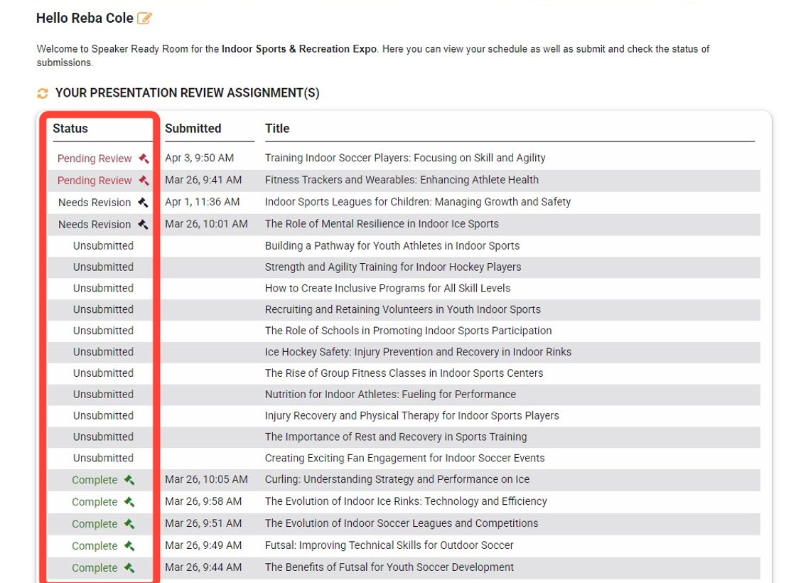 Pending Review – The presenter has uploaded their presentation, and it is now awaiting your review. This status indicates that your action is needed.